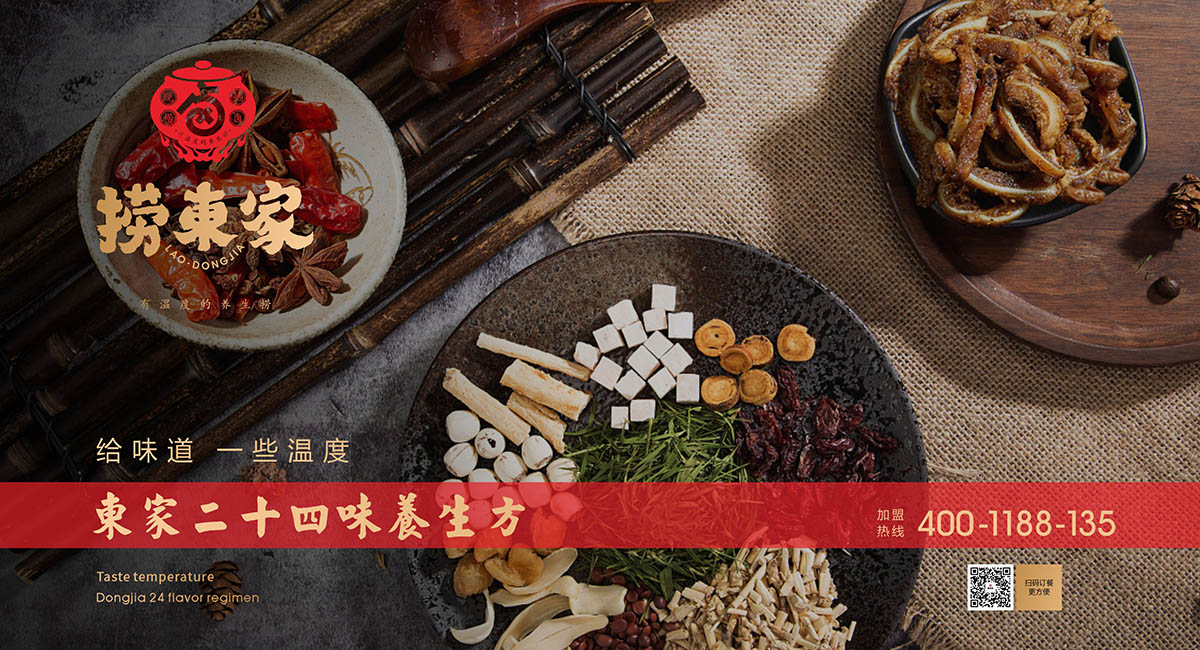 撈東家,創(chuàng)于成都。以冠絕東方的川味好鹵為基底,融匯東方傳統(tǒng)養(yǎng)生理念和現(xiàn)代營(yíng)養(yǎng)健康標(biāo)準(zhǔn),用一味獨(dú)特的養(yǎng)生熱撈,呈現(xiàn)中國(guó)傳統(tǒng)文化在現(xiàn)代都市的潮流味道,為中國(guó)都市人,添一份豐盛的營(yíng)養(yǎng)熱菜。