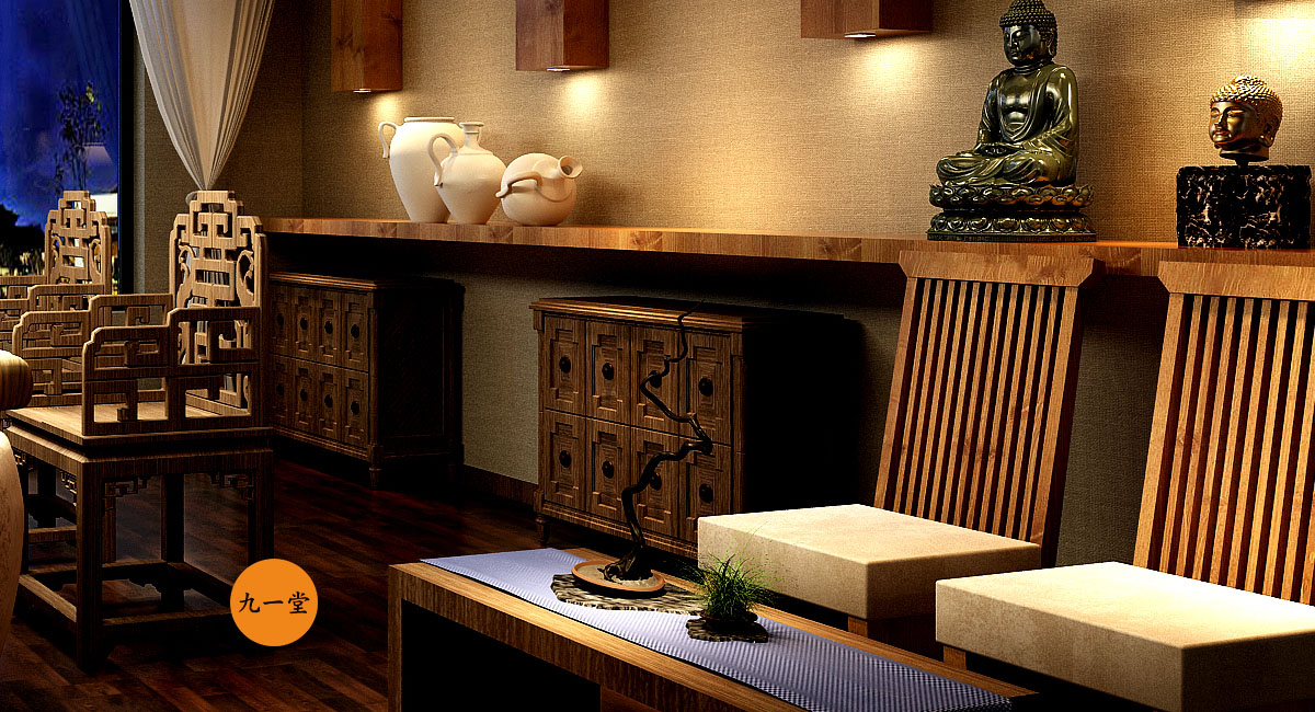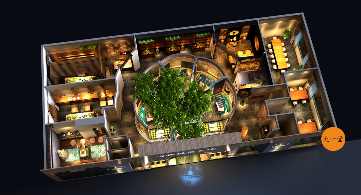 客戶是一個廣東的煤炭老板,資源與圈層當(dāng)然也很豐富,財富積累也是有著更高的要求,圈層朋友精神需求也是更高,希望有一個自己休憩,交流,暢談的空間,兼顧朋友的聚會,故而有了菩提道養(yǎng)生會館。成都九一堂商業(yè)空間設(shè)計多年的茶藝館設(shè)計經(jīng)驗,能夠很清晰洞察客戶需求和商業(yè)空間應(yīng)該注入的文化故事,經(jīng)與甲方多次交流,選址成都。九一堂商業(yè)空間設(shè)計空間布局以“菩提道”之核心精神為本,強調(diào)形與意的高度融合。“天圓地方”的水景為整個空間布局的視覺中心與焦點,一切動線的設(shè)置以它而展開。中心配以碩大的菩提樹,周圍輔以圍坐,水中有景,景中有調(diào),好似悟道情景的再現(xiàn)。此刻慢慢溢出的水流聲,琴聲,論道的談笑聲,在“菩提道”得以升華和共鳴。這是禪宗的最高境界!放下!自在!茶藝館設(shè)計不光要把文化植入與落地,更重要的是設(shè)置消費體驗與裝置, 讓整個品牌的精神價值得以輸出.
