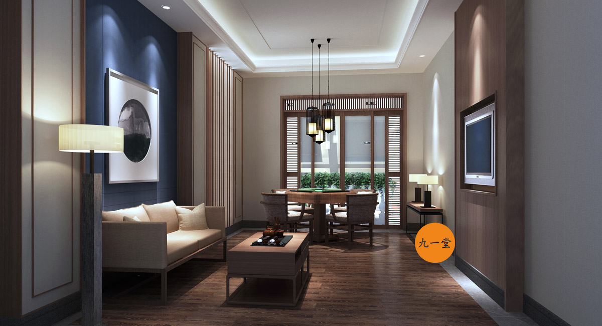 保留自然狀態(tài),展現(xiàn)出簡素淡雅的意境空間。室內(nèi)在光的營造下,寧靜而深邃,從容而淡定,體現(xiàn)東方渾厚文化積淀。