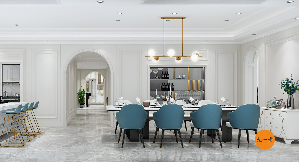設計理念:本案以簡約的美式風格為主,用目前流行的輕奢風格混搭家具,體現主人的品味,餐桌以條形桌分餐的就餐習慣來滿足客戶長期生活在國外的生活習慣。整個空間干凈,休閑、雅致,浪漫。