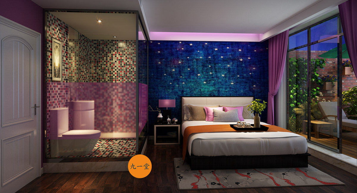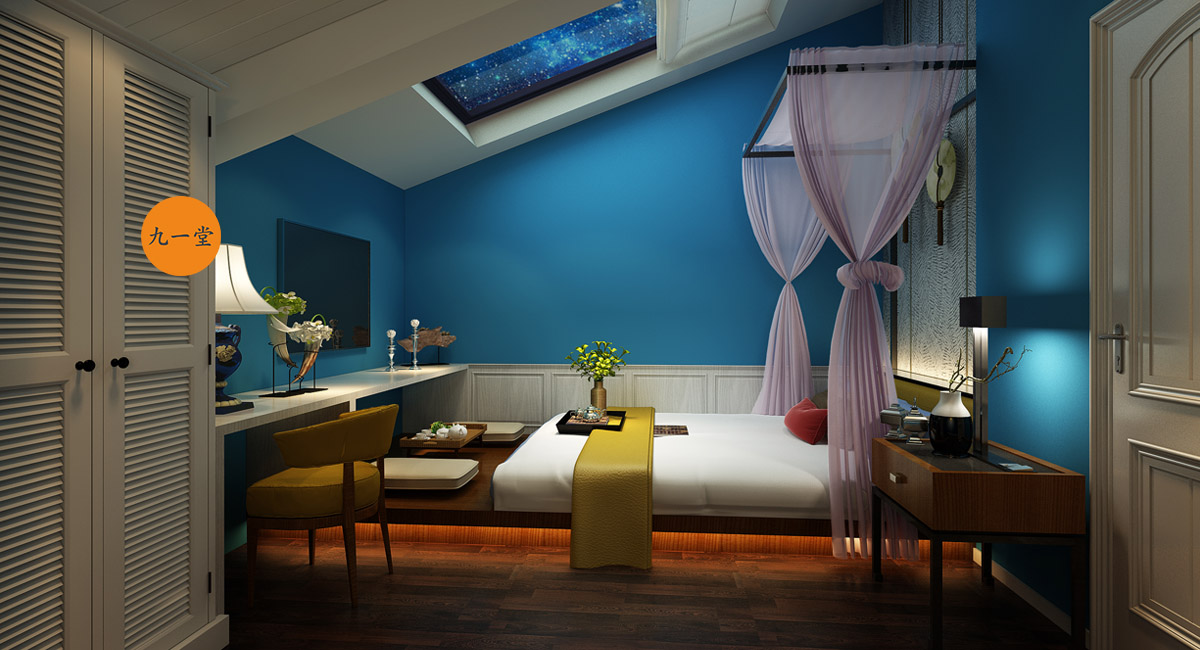 蘭亭星雨酒店,位于四川成都武侯區(qū),本項(xiàng)目選址商業(yè)頂層,層高達(dá)到8米,推窗即見(jiàn)星空,這正是酒店的賣(mài)點(diǎn)與買(mǎi)點(diǎn),成都九一堂設(shè)計(jì)充分利用建筑結(jié)構(gòu)本身特點(diǎn),將酒店空間作兩層處理,在一層的空間設(shè)計(jì)布局中將露臺(tái)分割到了每一個(gè)房間,讓之成為酒店配套花園,也加強(qiáng)了房間的亮點(diǎn)。在繁華的都市中去體驗(yàn)一處度假別院的花園主題酒店實(shí)屬珍貴。在頂面如此復(fù)雜的坡屋頂中找到了靈感,合理的規(guī)劃了空間,在二樓每個(gè)房間中打開(kāi)了一個(gè)天窗。在晴朗的夜空,還可以透過(guò)天窗看看夜空的星星,十分愜意,當(dāng)“霾”籠罩大地時(shí)我?guī)闳ヮI(lǐng)略漫天星海的凈空,這便是蘭亭星雨酒店的魅力所在,與眾不同,小而精致。九一堂設(shè)計(jì)在軟裝環(huán)節(jié)盡量做到簡(jiǎn)潔與溫馨,讓每一個(gè)房間精致,時(shí)尚,舒適.在眾多主題酒店選擇中,蘭亭星雨酒店有著自己獨(dú)特的競(jìng)爭(zhēng)力與優(yōu)勢(shì)。