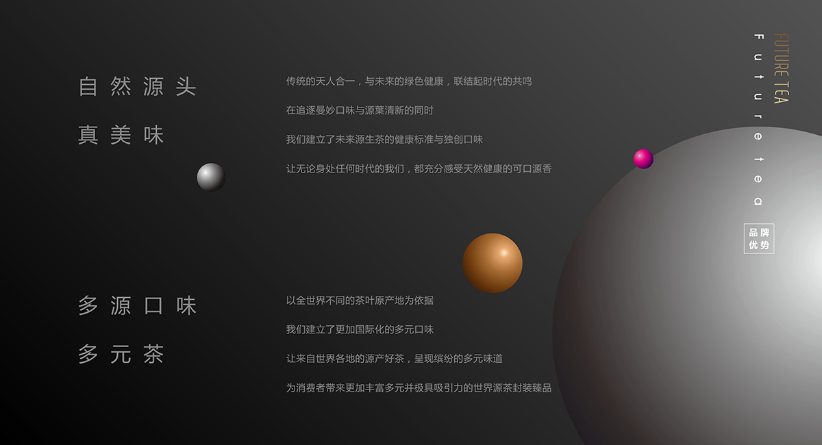 茶起源于中國(guó),更是世界的遺珍,我們運(yùn)用現(xiàn)代的科技,融匯傳統(tǒng)。萃取茶源產(chǎn)地中的有機(jī)物精華,令茶物種的精彩味道,在未來(lái)的繽紛茶飲中,綻放一抹源香。茶是中國(guó)的,更是世界的,茶從中國(guó)起源,卻不局限于中國(guó),而在世界各地萌生,并形成紛繁精彩的多樣茶之源,在正在到來(lái)的未來(lái),我們?cè)摻o世界怎樣的味道哪?